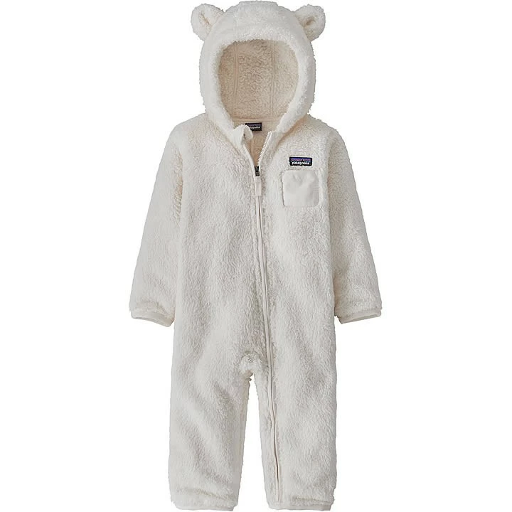 One-piece cozy bunting made of 100% recycled polyester high-pile fleece for cold-weather warmth. Three-panel hood, animal ears and tail styling, plus a binky-sized chest pocket. Fair Trade Certified™ sewn.