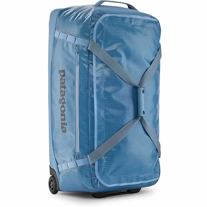 A highly weather-resistant 100-liter gear hauler with sturdy wheels and a telescoping handle. Made with 100% recycled body fabric, lining and webbing.